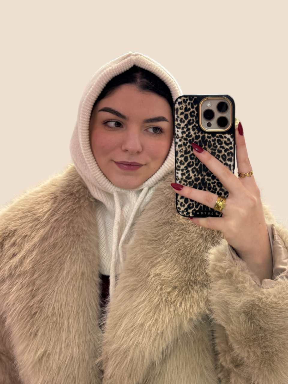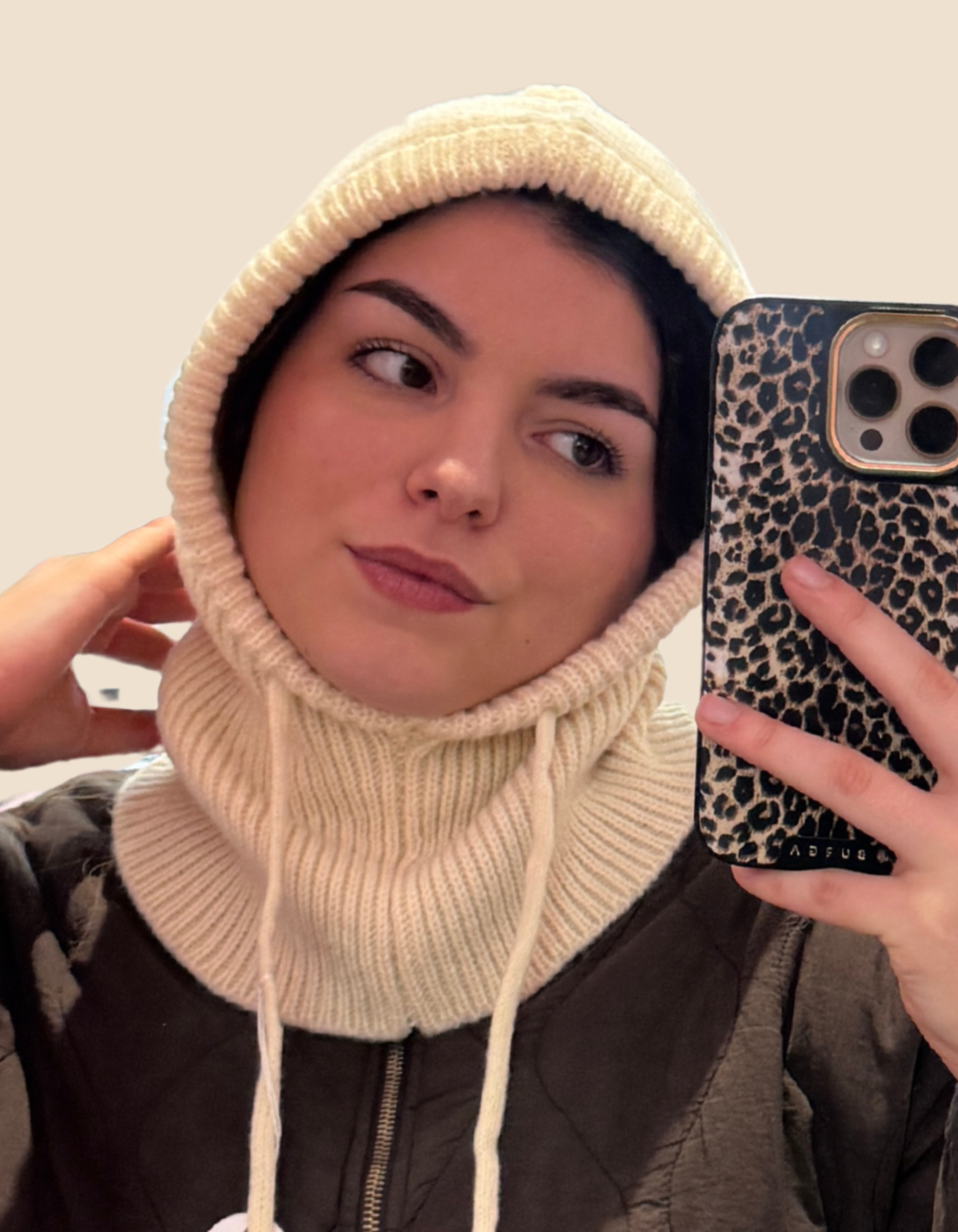 Composition: 100% acrylique sauf pour la cagoule noire (70 % viscose et 30 % laine)