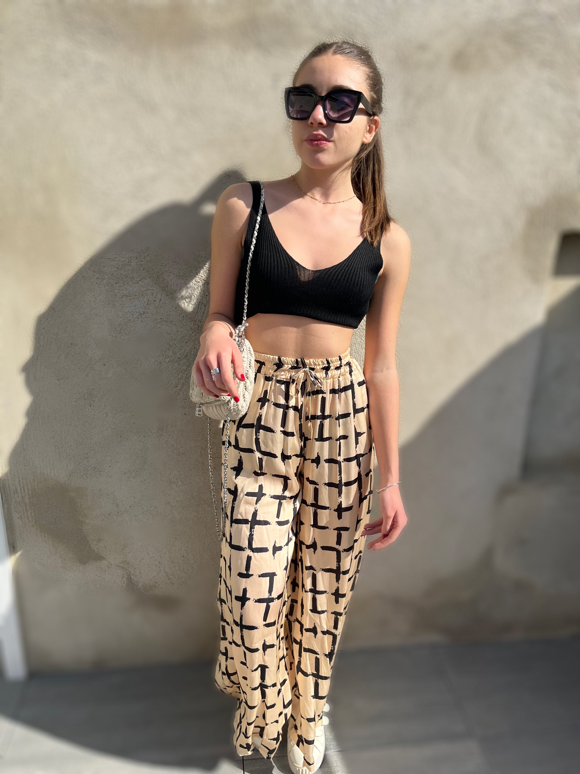 Le pantalon Clever est très fluide à porter, vous pouvez l’accorder à nos Top « Loving ».
